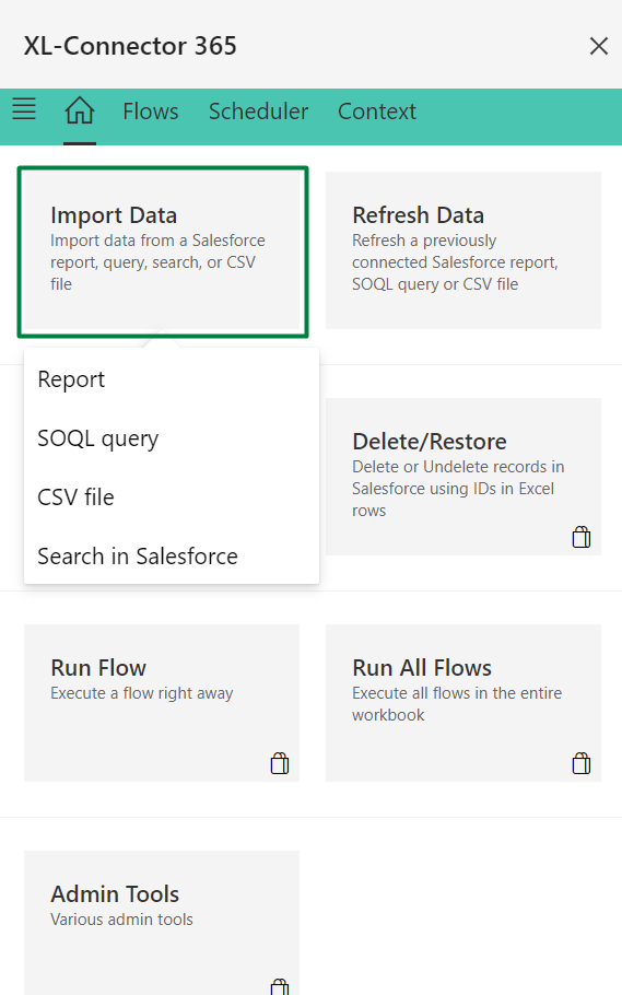 There are different ways to import Data from Salesforce with XL-Connector 365: